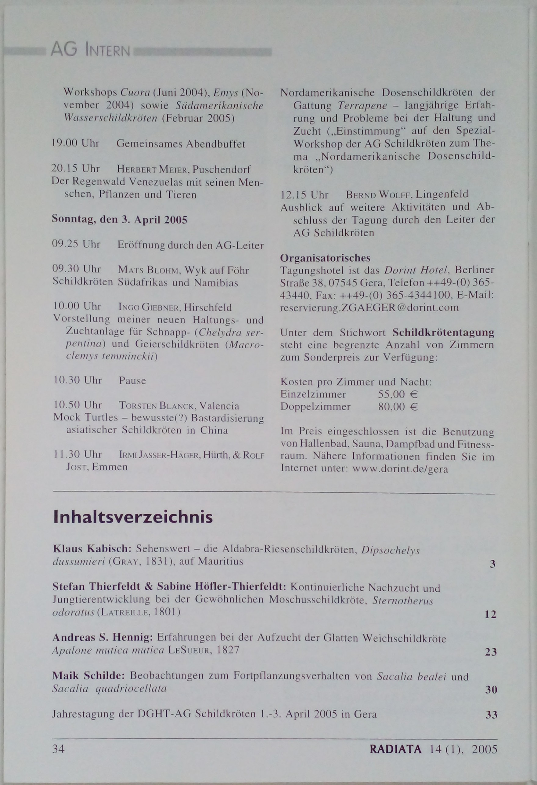 Radiata: Journal der DGHT-AG Schildkroten, 14 Jahrgang - Heft 1 - Februar 2005
