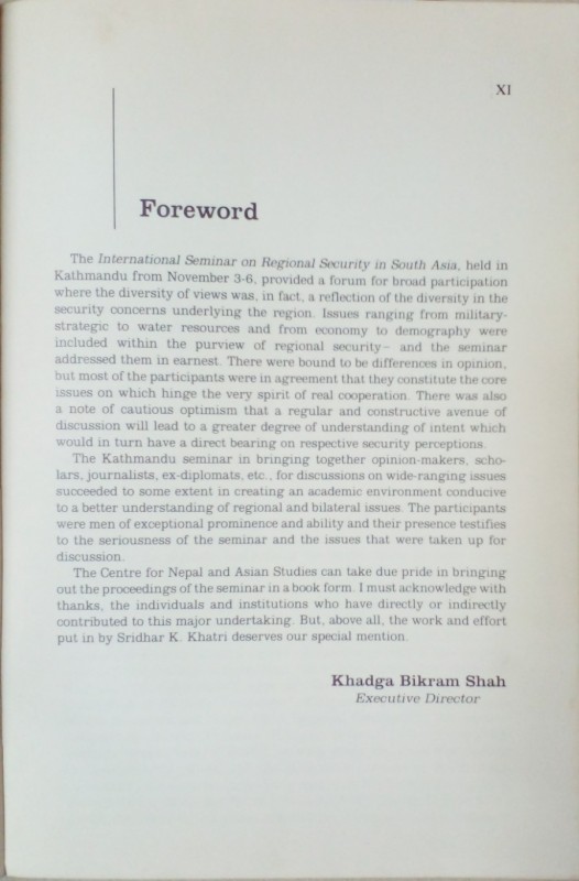 Regional Security in South Asia