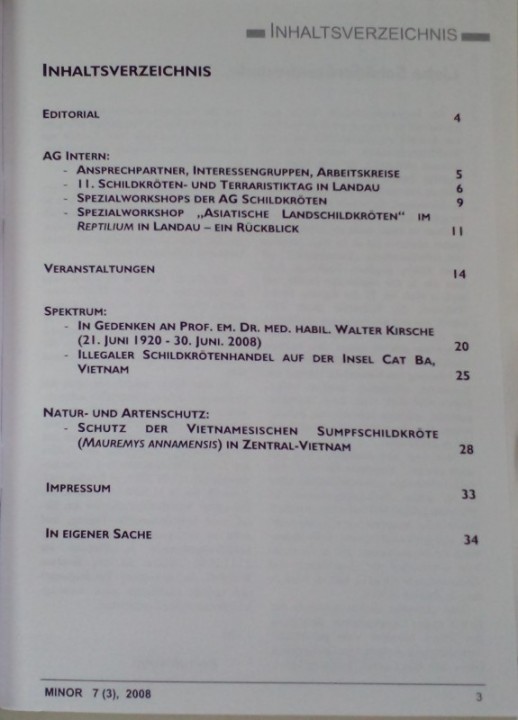 Minor: Journal about Turtles, 7 Jahrgang - Heft 3 -August 2008