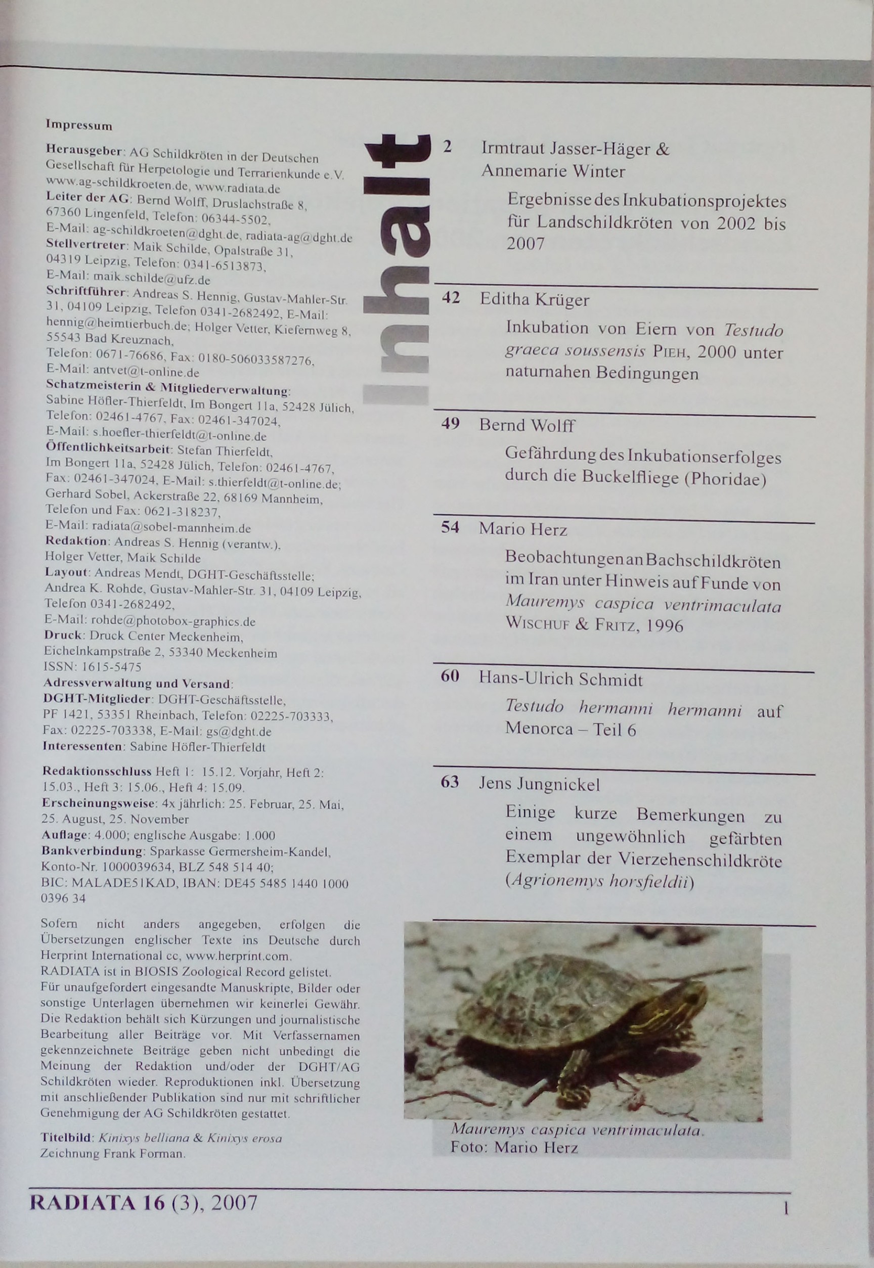Radiata: Journal der DGHT-AG Schildkroten, 16 Jahrgang - Heft 3 - Mai 2007