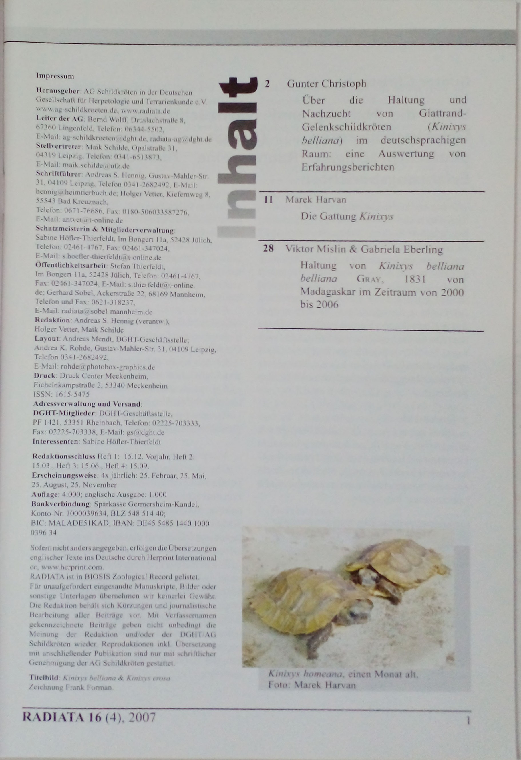 Radiata: Journal der DGHT-AG Schildkroten, 16 Jahrgang - Heft 4 - November 2007
